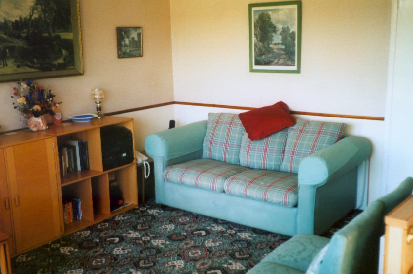 a colour T.V, VCR and a small hi-fi unit. The bathroom is